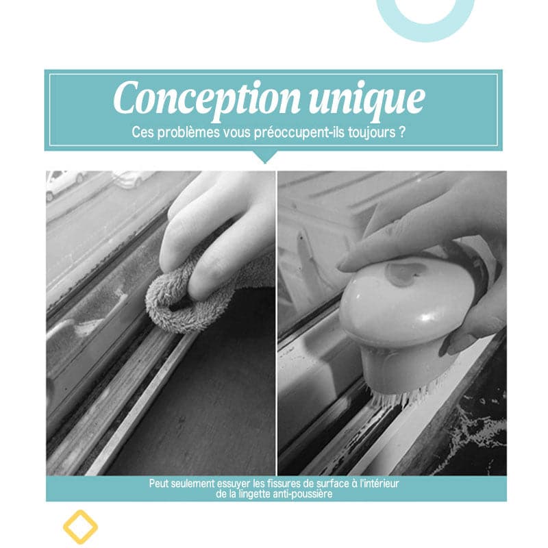 PPハンドル、握りやすいグリップ、固定ブラシヘッド設計、洗浄用バッファー素材、優れた洗浄力、窓枠やドア・窓ガラスを簡単に掃除できます。