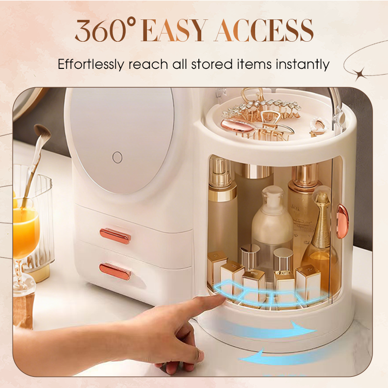 LEDミラー付き 化粧品収納 時短メイクと美のスペースを実現 大型収納ケース