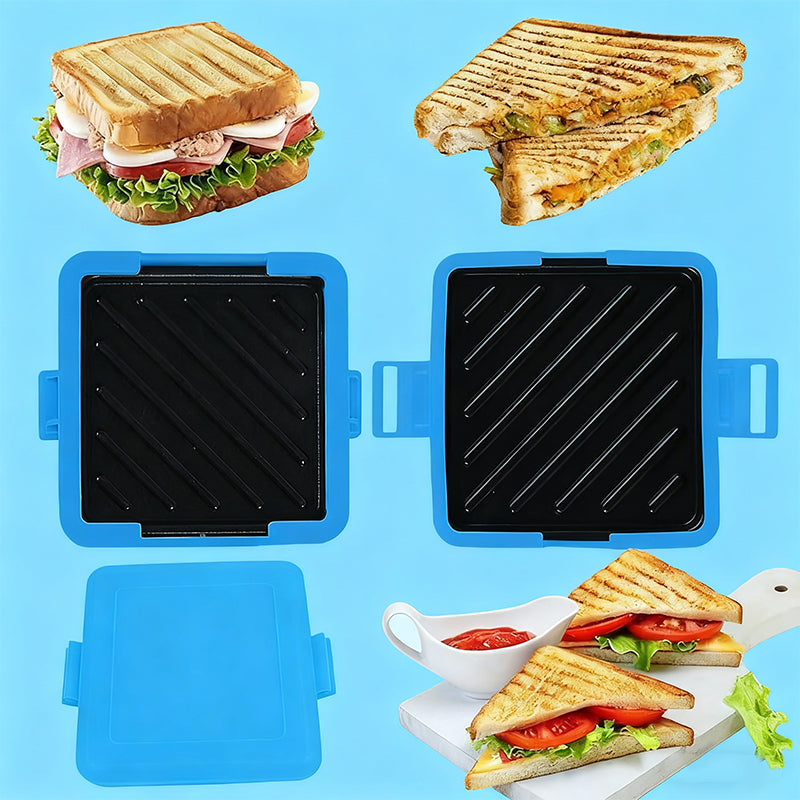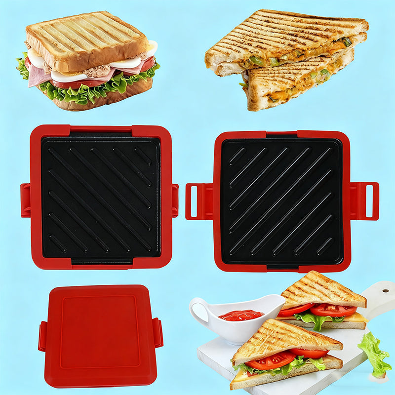 ユーザーフレンドリーな操作性 - サンドイッチを挟み、調節可能なシリコンストラップで固定し、電子レンジで3~5分加熱するだけ。途中でひっくり返せば均一な焼き上がり。簡単なセットアップと直感的なデザインで、誰でも数分で美味しいトーストサンドを作れます。学生、忙しいビジネスパーソン、おやつ好きの方に最適です。