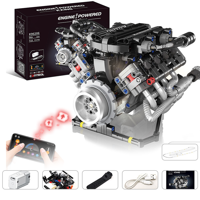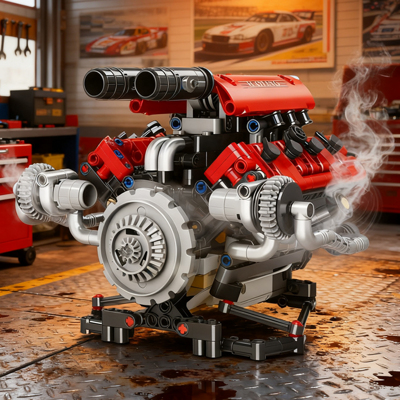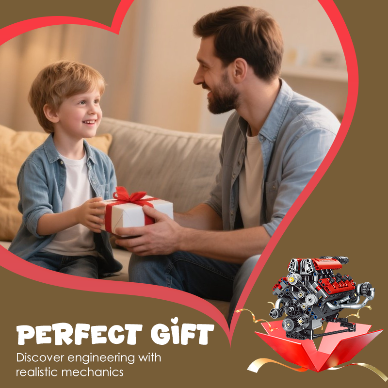 実際のエンジン機構を精密に再現した組み立てキット。ピストン運動やチェーン駆動など、自動車工学の基本原理を楽しく学べる教育的な教材です.