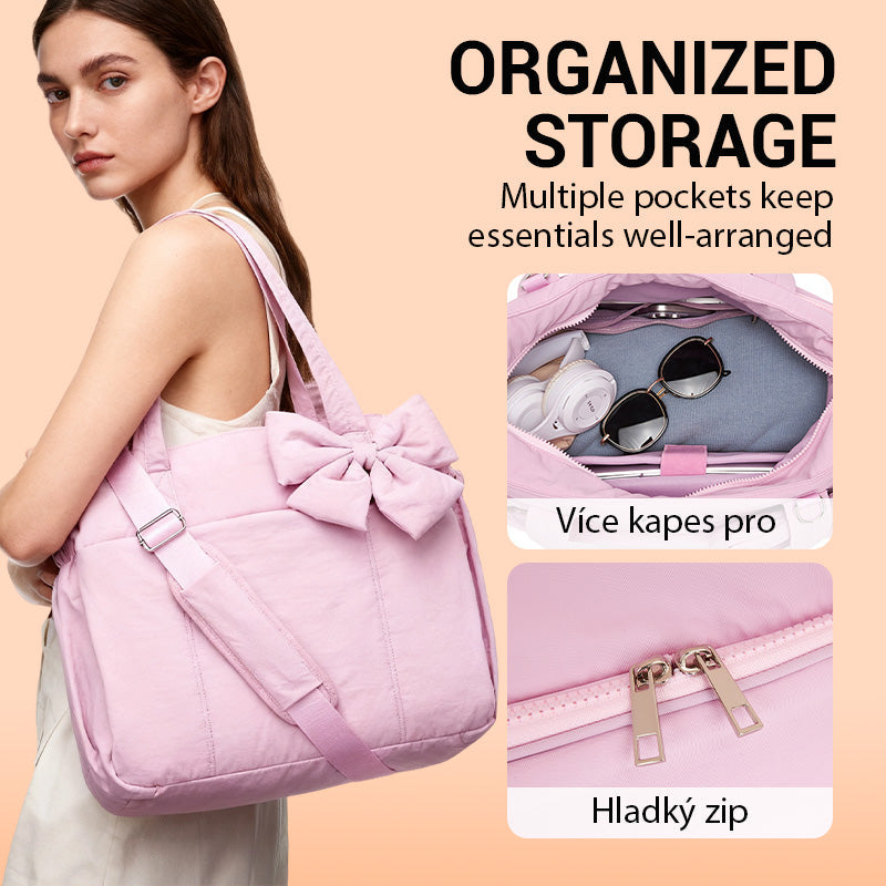 スマートな収納 – バッグには、広々としたメインコンパートメント、サイドポケット、安全なジッパー付きポケットなど、いくつかのコンパートメントがあり、荷物の整理が簡単です。整理しやすい構造で、散らかりを防ぎ、必要なものを探す時間を節約します。