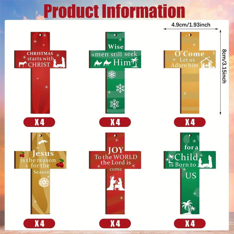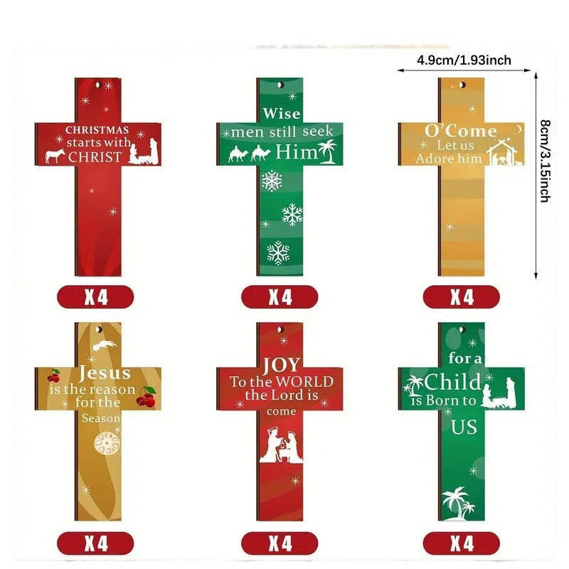 1 * 24個入りクリスマス用木製十字架飾り(吊り下げタイプ)
