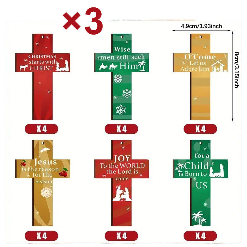 3 * 24個入りクリスマス用木製十字架飾り(吊り下げタイプ)