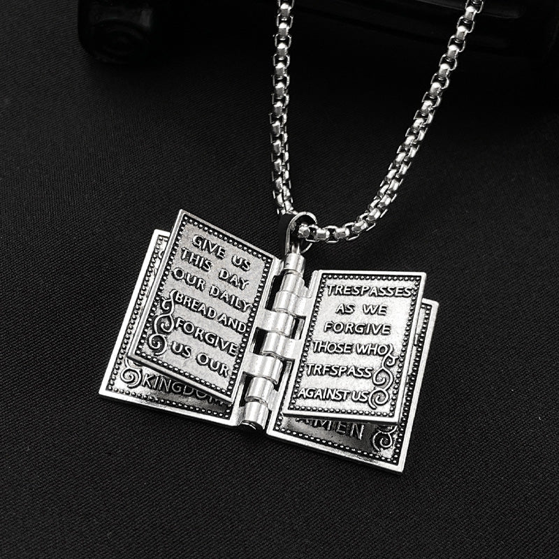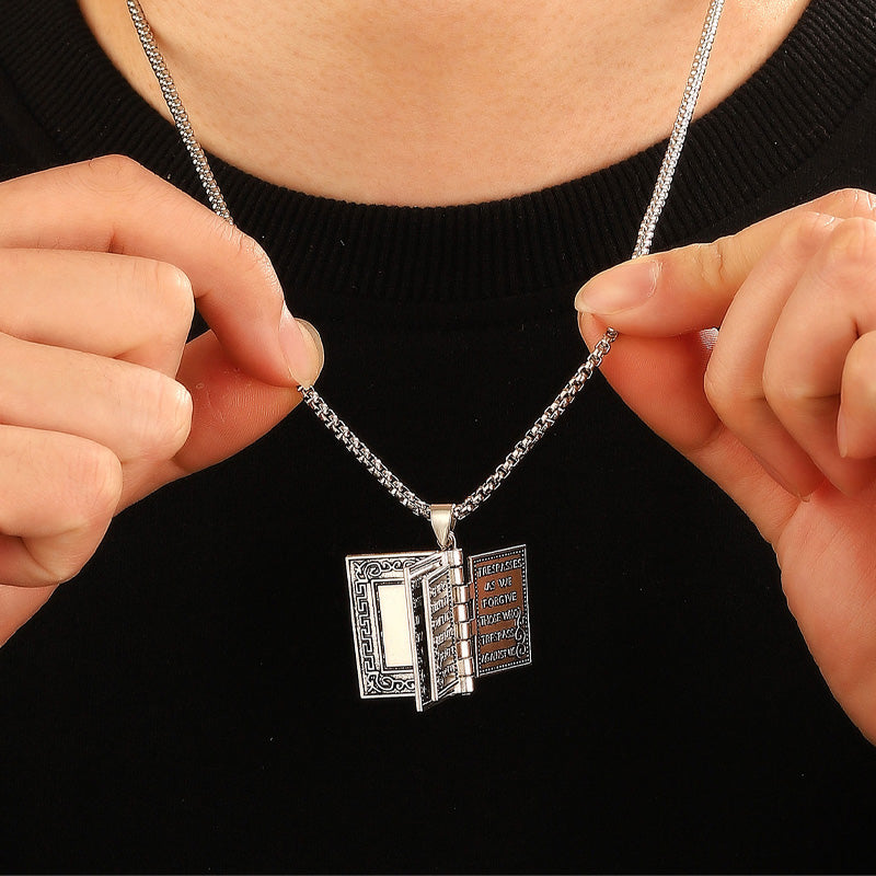 聖書に着想を得たユニークなデザイン:このペンダントはミニチュア聖書の形状で、開閉可能なヒンジ構造を採用しています。時代を超えたスタイルで、信仰と優雅さを象徴しています。