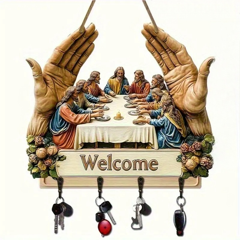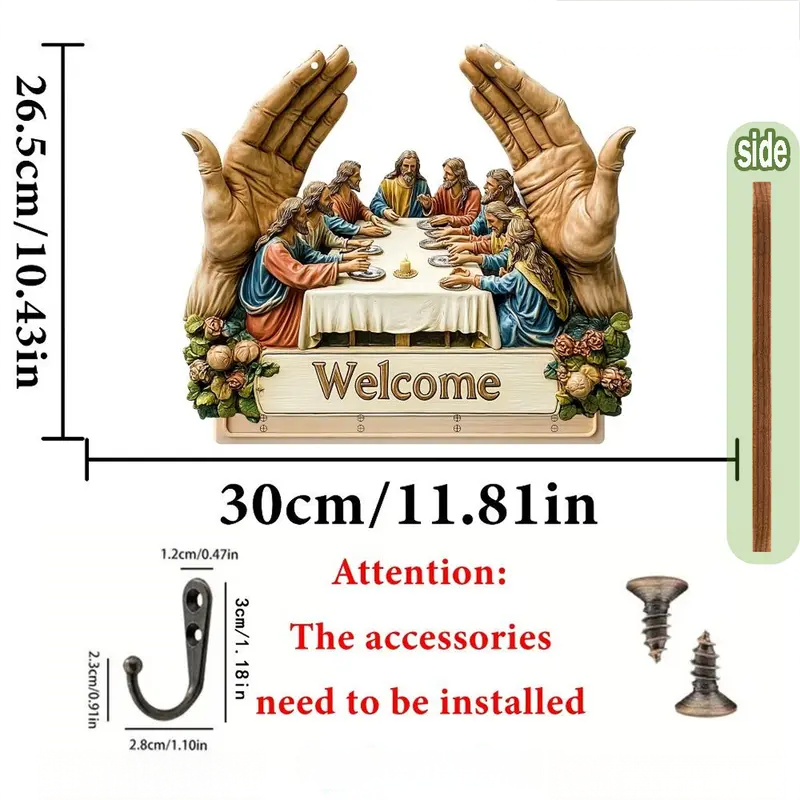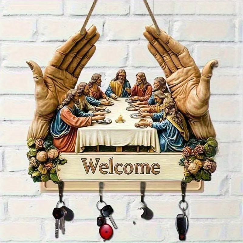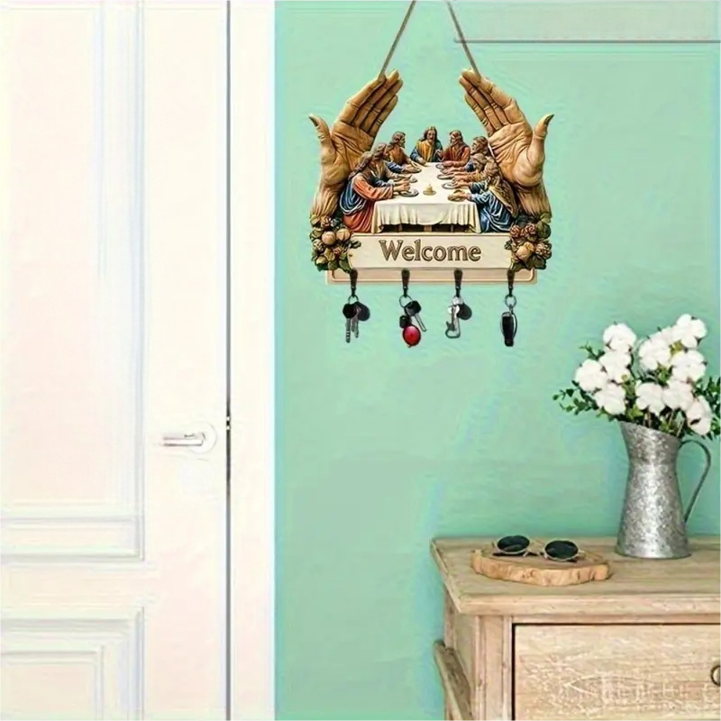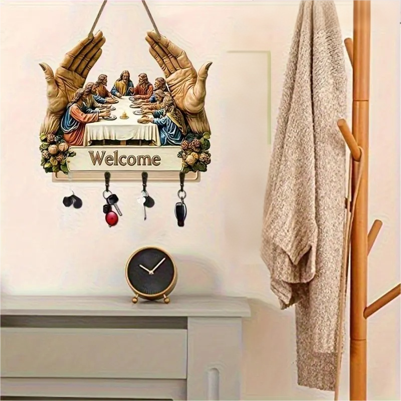 クラシックな芸術的デザイン:象徴的な「最後の晩餐」をモチーフにしたこの木製キーホルダーは、時代を超えた美しさで室内を彩ります。芸術的なプリントが優雅さを添えつつ、装飾性と機能性を融合。シンプルな壁面アクセサリーを、意味あるホームアートへと昇華させます。