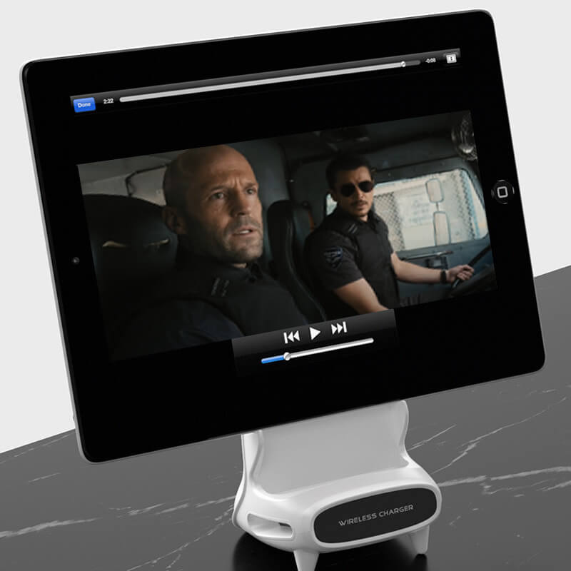このスマートフォンホルダーはワイヤレス充電に対応しており、スマートフォンを素早く安全に充電できます。