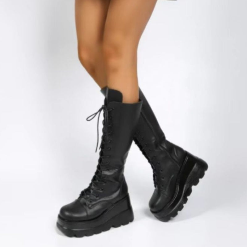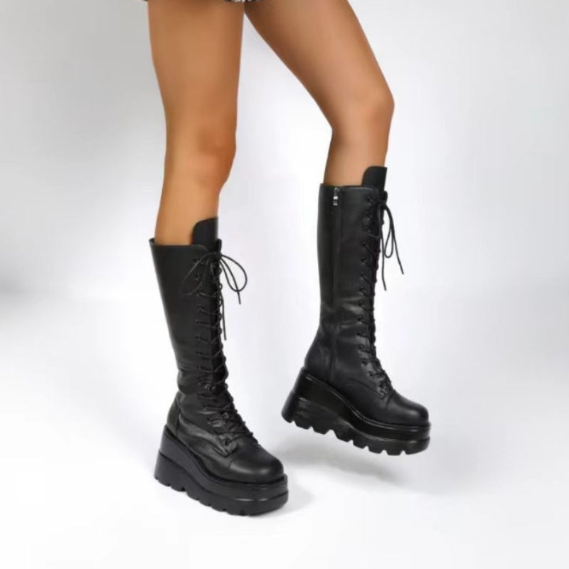 👢パンクスタイル レースアップブーツ ニーハイで個性派コーディネートに差をつける